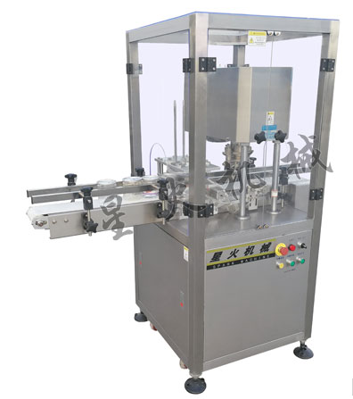 型號:XH-25 多口徑全自動封罐機材料:不銹鋼 封罐頭數:1 封罐速度:20~25罐/min 封罐高度:50-200mm可調 適用瓶型直徑:35-125mm(可多個口徑使用) 電壓:220V/50Hz 功率:310W 重量:200KG 尺寸:1500(L)*800(W)*1500(H)mm 1、罐蓋聯控裝置:當有罐身進入時,才相應配給罐蓋,無罐則無蓋;